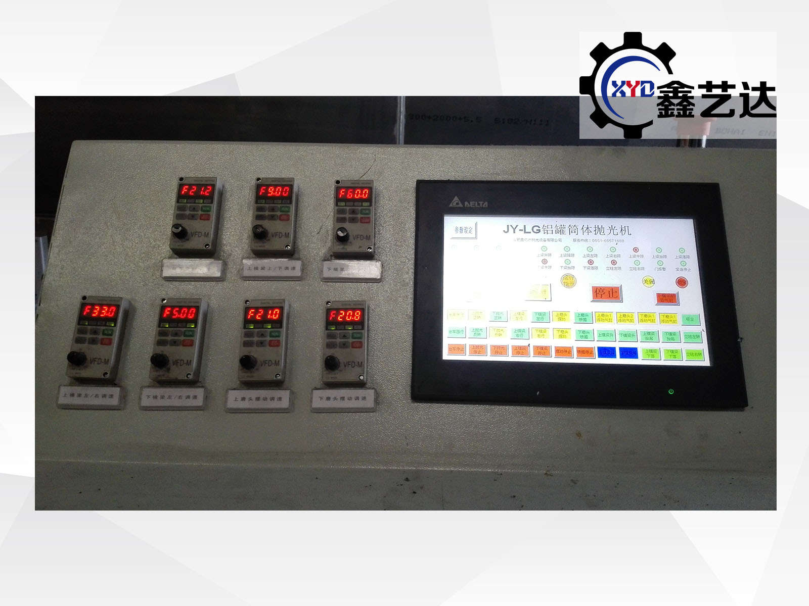 Polishing carriage length 2m × width 2m × high 4m, polishing trolley along the track using the travel speed motor with a motor brake, traveling at different speeds to achieve a positive direction;